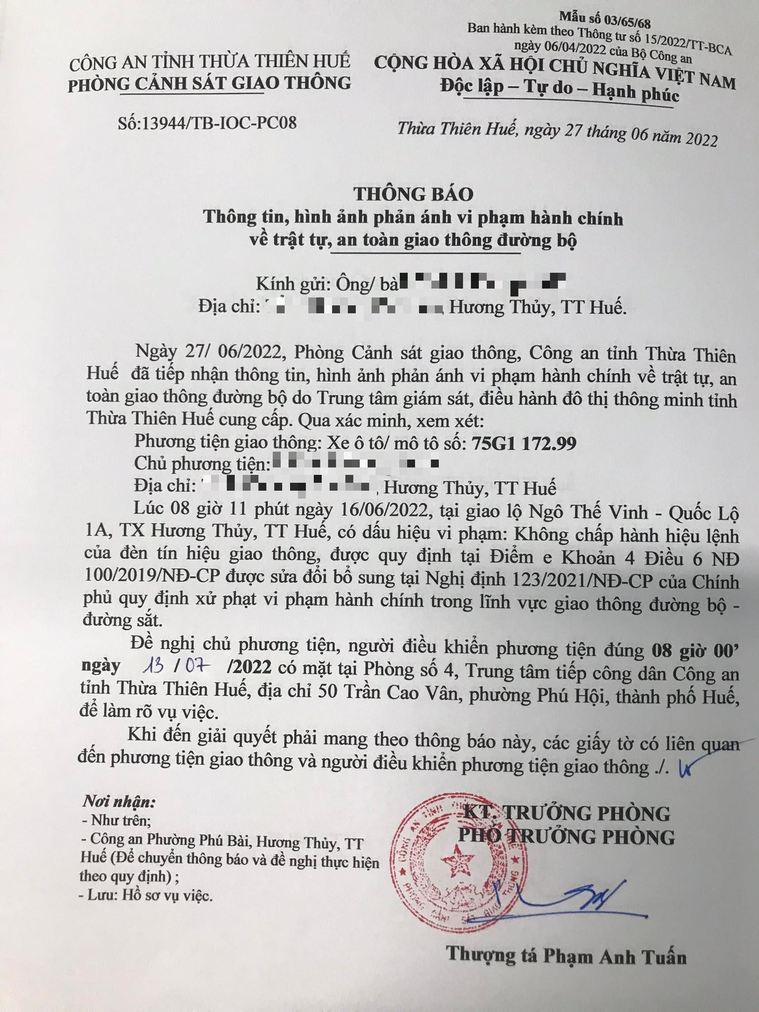 Vấn đề Ông/Bà phản ánh, Công an tỉnh đã chỉ đạo Phòng Cảnh sát giao thông xin thông báo kết quả xử lý như sau: