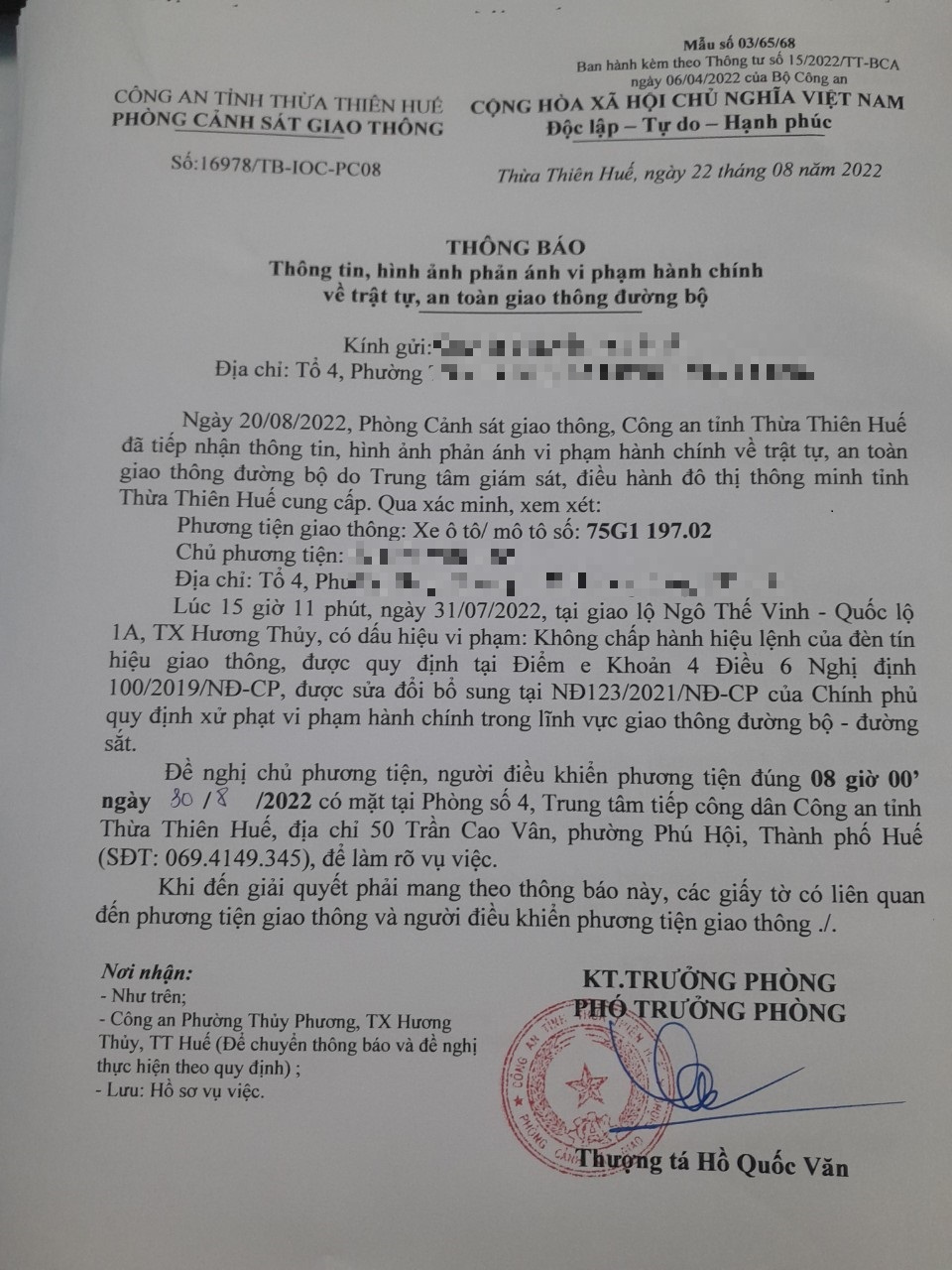Phòng CSGT đã gửi thông báo, yêu cầu chủ phương tiện đến làm việc theo quy định của pháp luật. Tuy nhiên, đã quá ngày hẹn nhưng chủ phương tiện vẫn chưa đến làm việc theo yêu cầu. Phòng CSGT sẽ tiếp tục thông báo Công an địa phương nơi chủ phương tiện thường trú; đồng thời, thông báo các tổ tuần tra kiểm soát trên địa bàn, trong quá trình làm nhiệm vụ nếu phát hiện sẽ tiến hành dừng xe để xử lý.