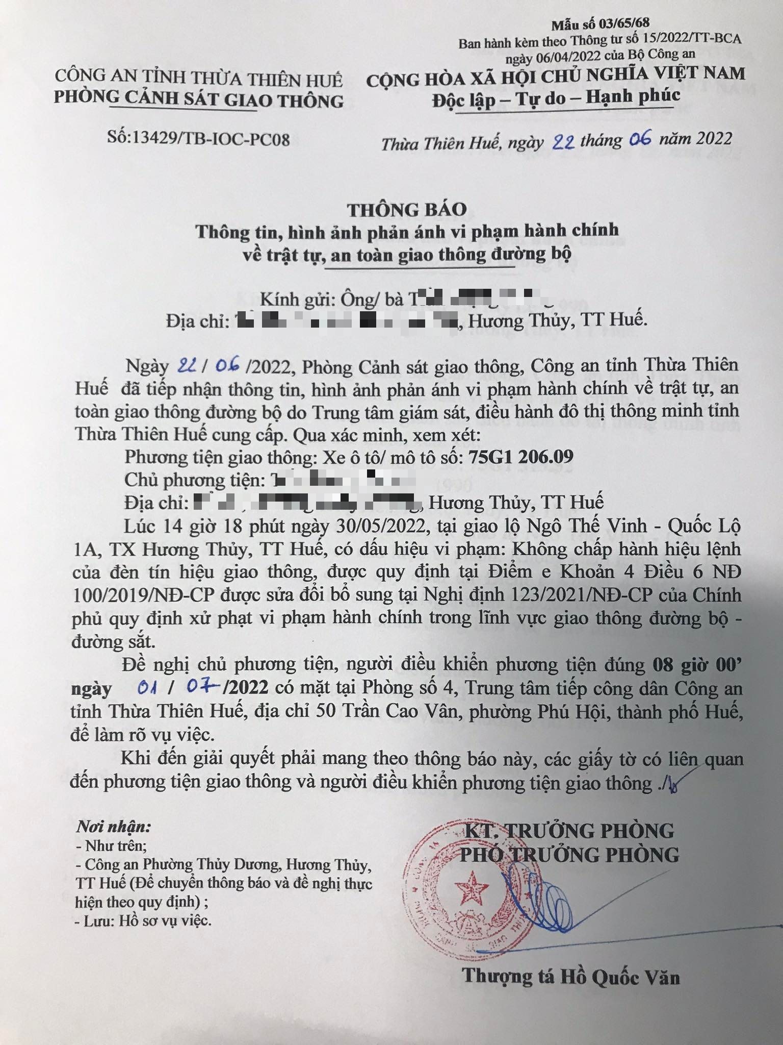 Phòng Cảnh sát giao thông đã gửi thông báo, yêu cầu chủ phương tiện đến làm việc vào ngày 01/7/2022. Tuy nhiên, hiện chủ phương tiện vẫn chưa trình diện tại cơ quan. Phòng Cảnh sát giao thông sẽ tiếp tục thông báo Công an địa phương nơi chủ phương tiện thường trú; đồng thời, thông báo các tổ tuần tra kiểm soát trên địa bàn, trong quá trình làm nhiệm vụ nếu phát hiện sẽ tiến hành dừng xe để xử lý.