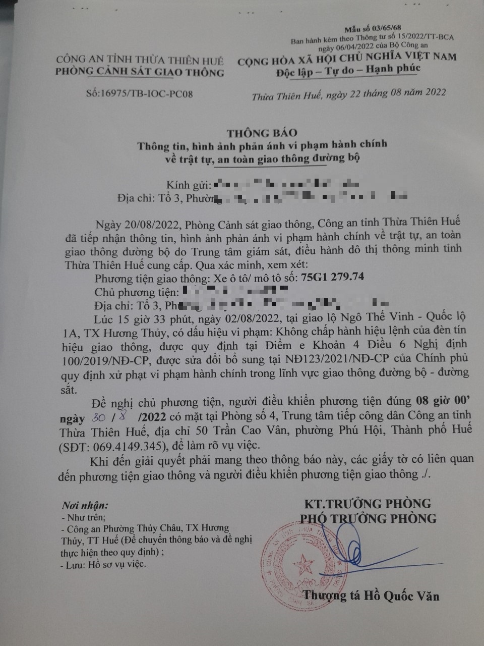 Vấn đề Ông/Bà phản ánh, Công an tỉnh đã chỉ đạo Phòng Cảnh sát giao thông xin thông báo kết quả xử lý như sau: