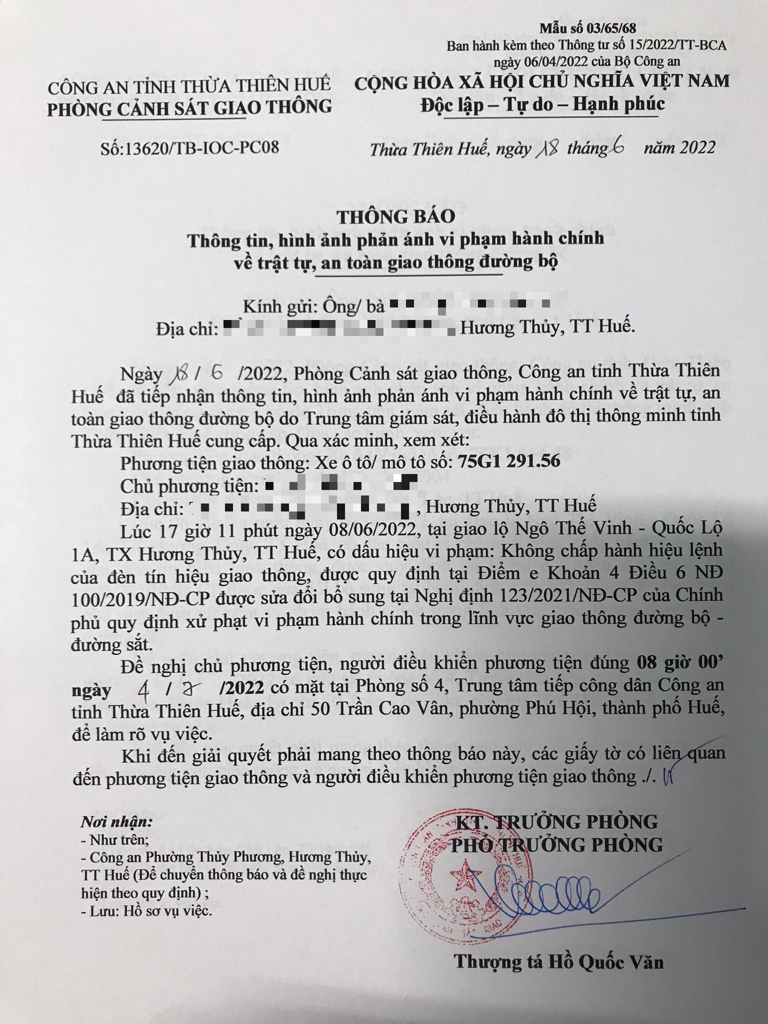 Phòng Cảnh sát giao thông đã gửi thông báo, yêu cầu chủ phương tiện đến làm việc vào ngày 04/7/2022. Tuy nhiên, hiện chủ phương tiện vẫn chưa trình diện tại cơ quan. Phòng Cảnh sát giao thông sẽ tiếp tục thông báo Công an địa phương nơi chủ phương tiện thường trú; đồng thời, thông báo các tổ tuần tra kiểm soát trên địa bàn, trong quá trình làm nhiệm vụ nếu phát hiện sẽ tiến hành dừng xe để xử lý.