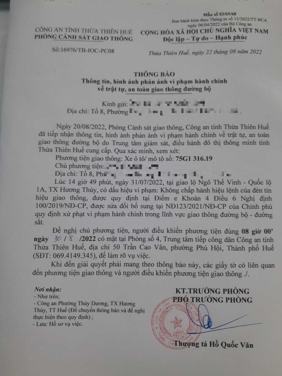 Vấn đề Ông/Bà phản ánh, Công an tỉnh đã chỉ đạo Phòng Cảnh sát giao thông xin thông báo kết quả xử lý như sau: