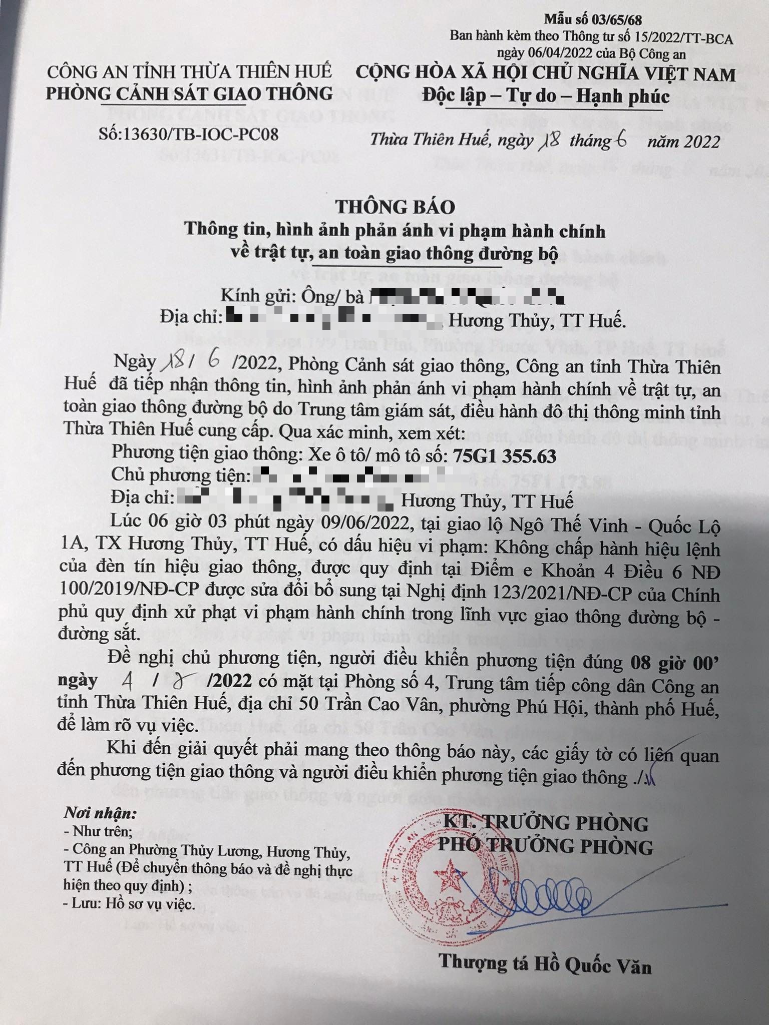 Phòng Cảnh sát giao thông đã gửi thông báo, yêu cầu chủ phương tiện đến làm việc vào ngày 04/7/2022. Tuy nhiên, hiện chủ phương tiện vẫn chưa trình diện tại cơ quan. Phòng Cảnh sát giao thông sẽ tiếp tục thông báo Công an địa phương nơi chủ phương tiện thường trú; đồng thời, thông báo các tổ tuần tra kiểm soát trên địa bàn, trong quá trình làm nhiệm vụ nếu phát hiện sẽ tiến hành dừng xe để xử lý.