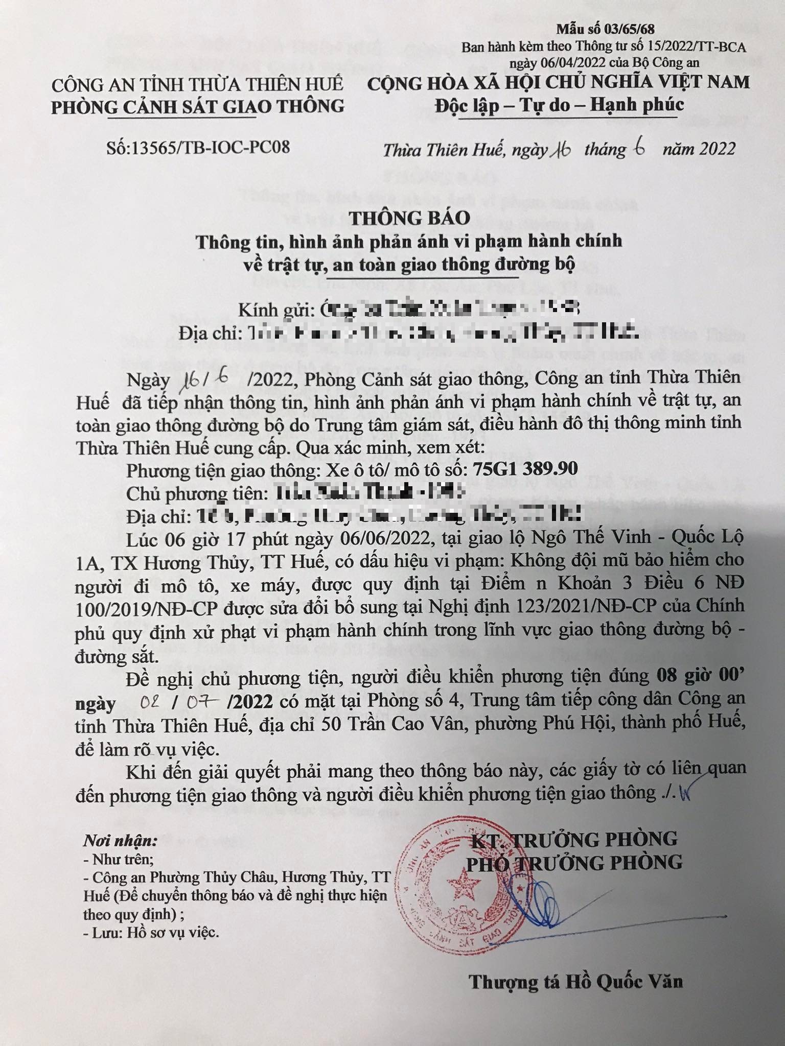 Phòng Cảnh sát giao thông xác định lỗi vi phạm của người điều khiển phương tiện 75G138990: Không đội mũ bảo hiểm cho người đi mô tô, xe máy, quy định tại điểm n khoản 3 điều 6 Nghị định 100/2019/NĐ-CP được sửa đổi, bổ sung tại Nghị định 123/NĐ-CP ngày 28/12/2021.