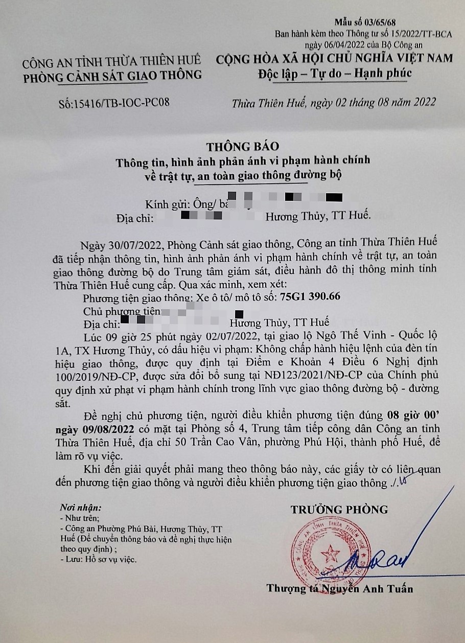 Vấn đề Ông/Bà phản ánh, Công an tỉnh đã chỉ đạo Phòng Cảnh sát giao thông xin thông báo kết quả xử lý như sau: