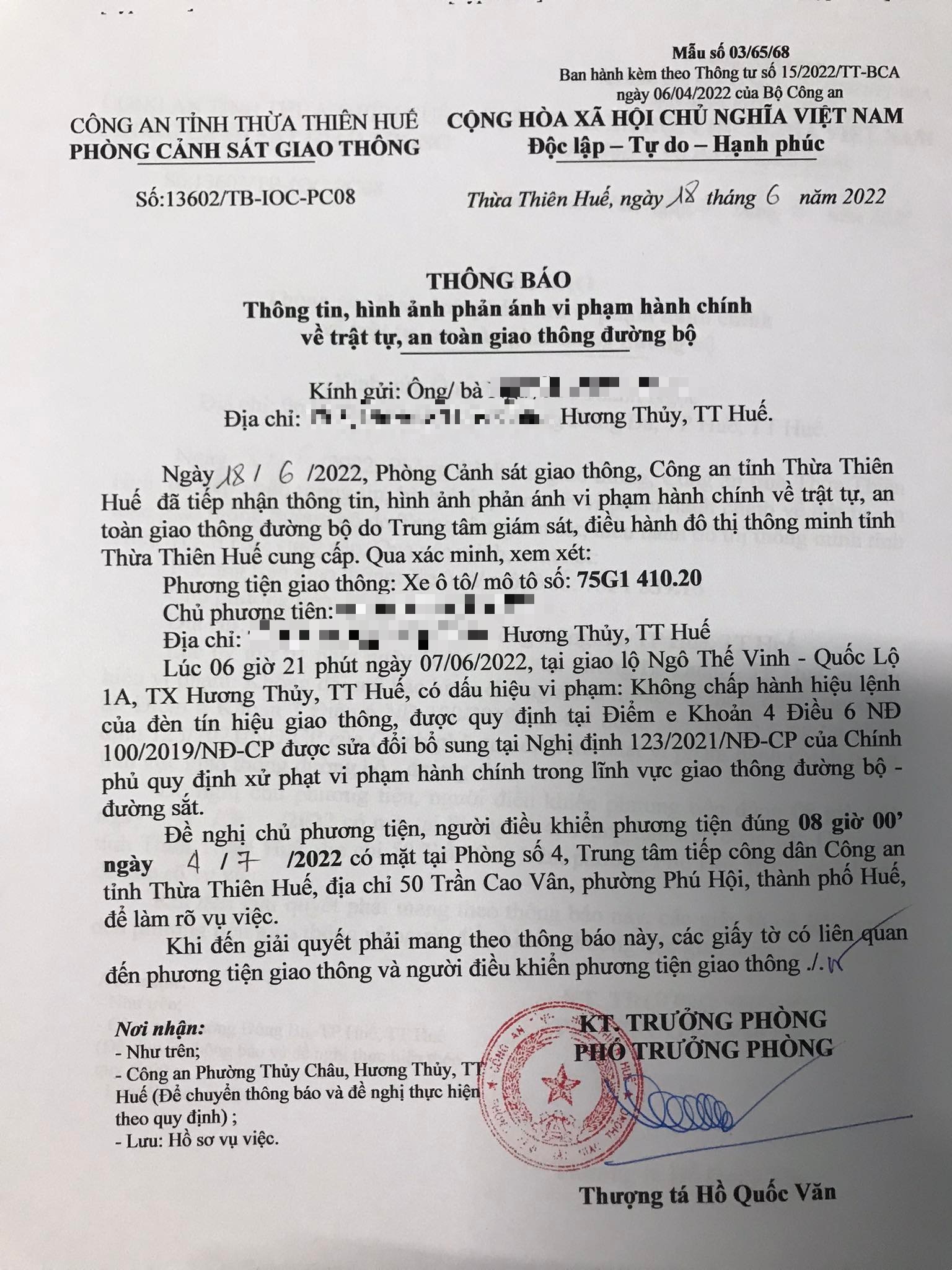 Phòng Cảnh sát giao thông đã gửi thông báo, yêu cầu chủ phương tiện đến làm việc vào ngày 04/7/2022. Tuy nhiên, hiện chủ phương tiện vẫn chưa trình diện tại cơ quan. Phòng Cảnh sát giao thông sẽ tiếp tục thông báo Công an địa phương nơi chủ phương tiện thường trú; đồng thời, thông báo các tổ tuần tra kiểm soát trên địa bàn, trong quá trình làm nhiệm vụ nếu phát hiện sẽ tiến hành dừng xe để xử lý.