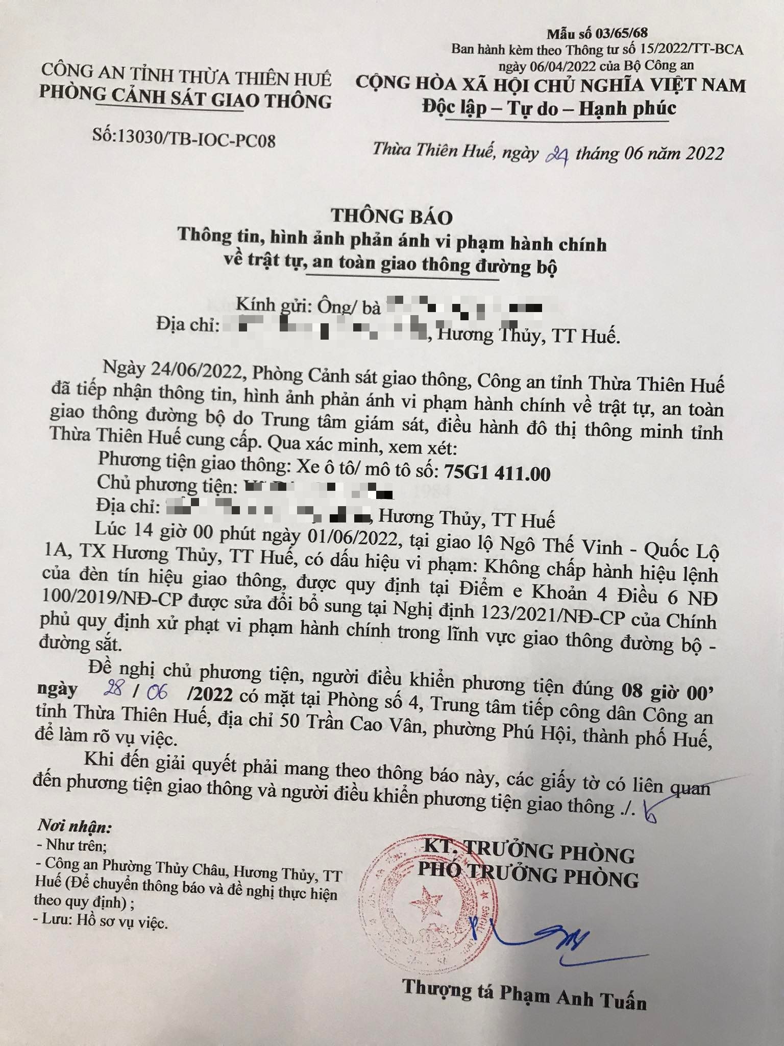 Phòng Cảnh sát giao thông đã lập hồ sơ, thông báo chủ phương tiện đến làm việc vào ngày 28/6/2021. Tuy nhiên, hiện chủ phương tiện vẫn chưa trình diện tại cơ quan. Phòng Cảnh sát giao thông sẽ tiếp tục gửi thông báo đến Công an địa phương nơi chủ phương tiện thường trú, đồng thời thông báo lực lượng tuần tra kiểm soát trên địa bàn, trong quá trình làm nhiệm vụ phát hiện, xử lý.