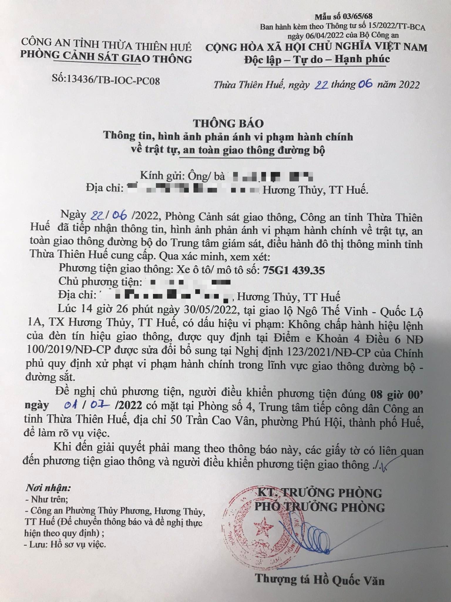 Phòng Cảnh sát giao thông đã gửi thông báo, yêu cầu chủ phương tiện đến làm việc vào ngày 01/7/2022. Tuy nhiên, hiện chủ phương tiện vẫn chưa trình diện tại cơ quan. Phòng Cảnh sát giao thông sẽ tiếp tục thông báo Công an địa phương nơi chủ phương tiện thường trú; đồng thời, thông báo các tổ tuần tra kiểm soát trên địa bàn, trong quá trình làm nhiệm vụ nếu phát hiện sẽ tiến hành dừng xe để xử lý.
