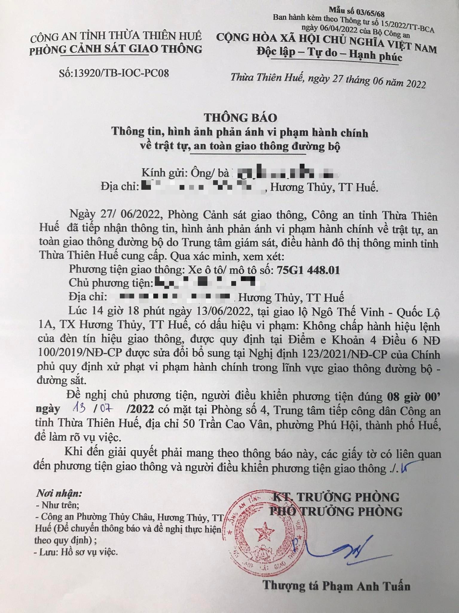 Vấn đề Ông/Bà phản ánh, Công an tỉnh đã chỉ đạo Phòng Cảnh sát giao thông xin thông báo kết quả xử lý như sau:
