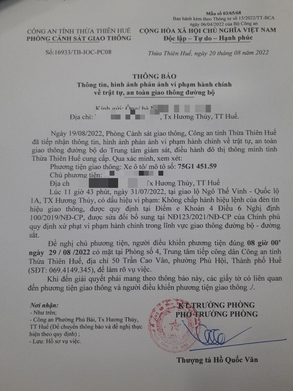 Vấn đề Ông/Bà phản ánh, Công an tỉnh đã chỉ đạo Phòng Cảnh sát giao thông xin thông báo kết quả xử lý như sau: