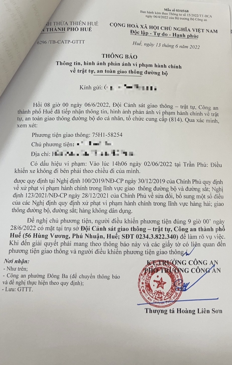 Công an thành phố đã lập hồ sơ, thông báo chủ phương tiện đến làm việc vào ngày 28/6/2022. Tuy nhiên, hiện chủ phương tiện vẫn chưa trình diện tại cơ quan. Công an thành phố Huế sẽ tiếp tục thông báo lực lượng tuần tra trên địa bàn, trong quá trình làm nhiệm vụ phát hiện, xử lý.