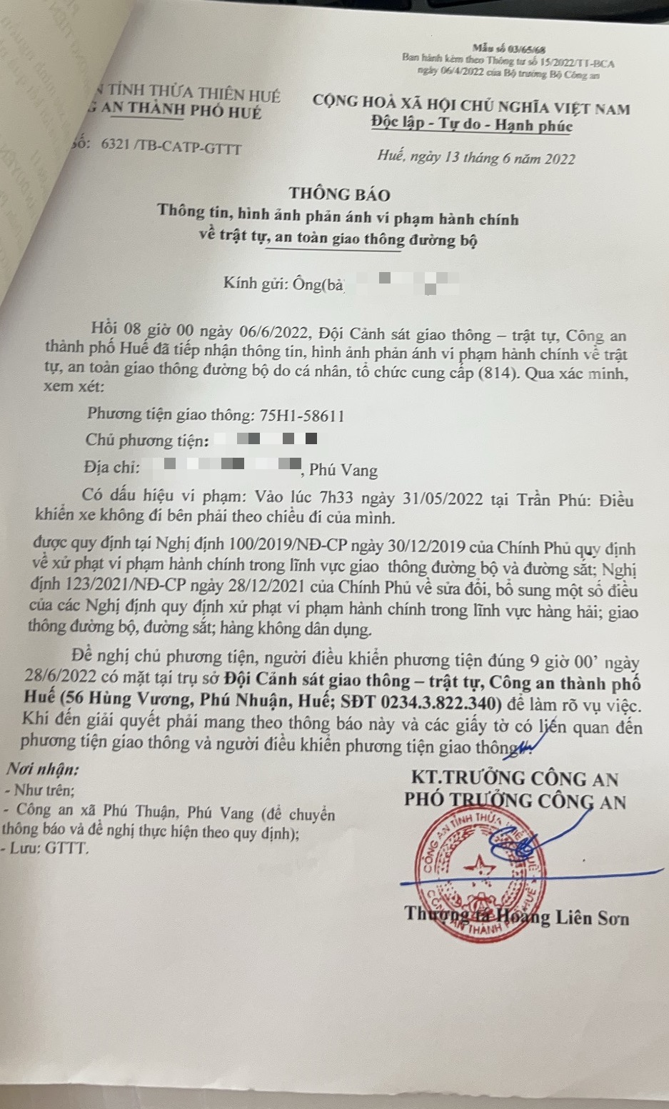 Vấn đề Ông/Bà phản ánh, Công an tỉnh đã chỉ đạo Phòng Cảnh sát giao thông xác minh và trả lời như sau: