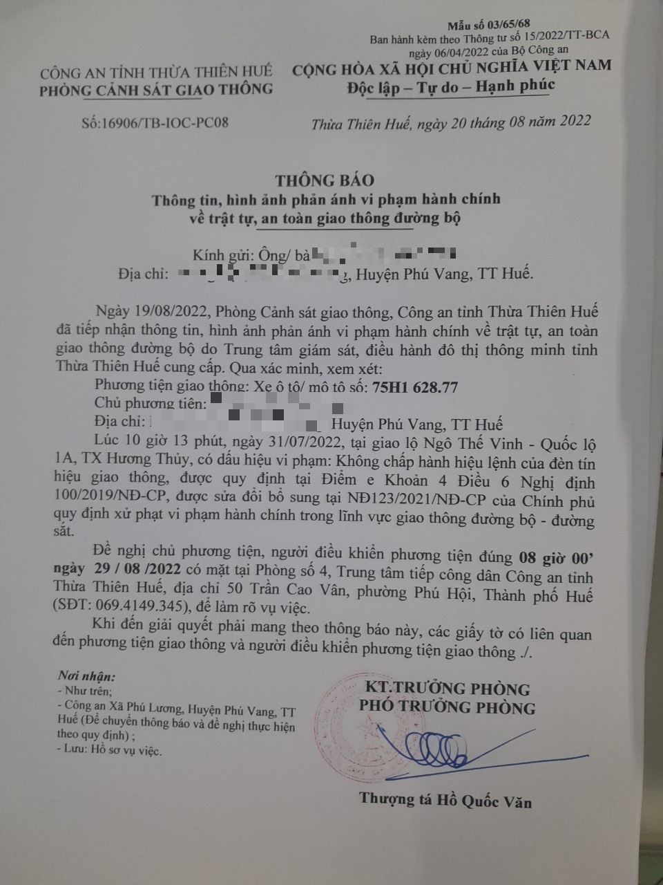 Vấn đề Ông/Bà phản ánh, Công an tỉnh đã chỉ đạo Phòng Cảnh sát giao thông xin thông báo kết quả xử lý như sau: