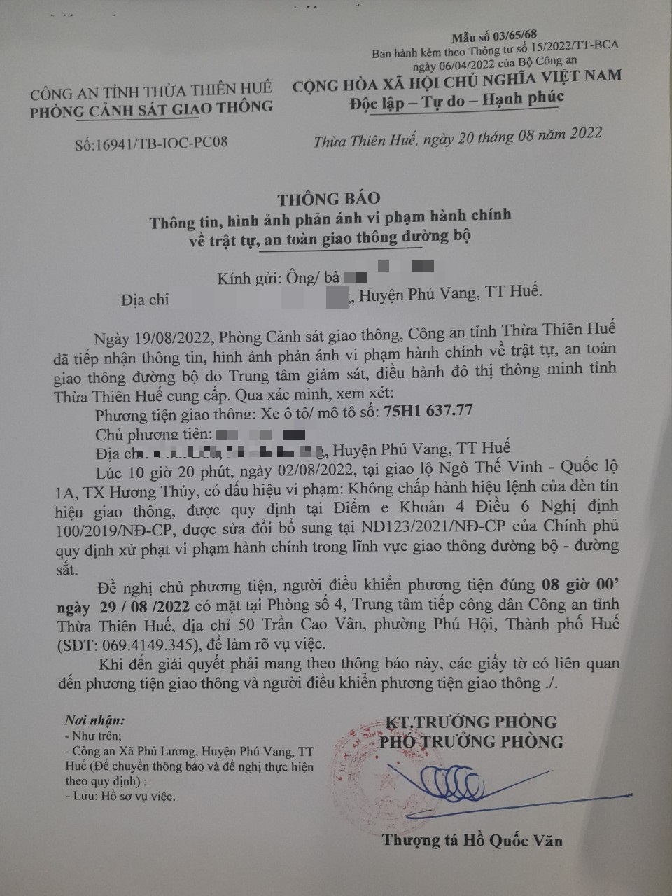 Vấn đề Ông/Bà phản ánh, Công an tỉnh đã chỉ đạo Phòng Cảnh sát giao thông xin thông báo kết quả xử lý như sau: