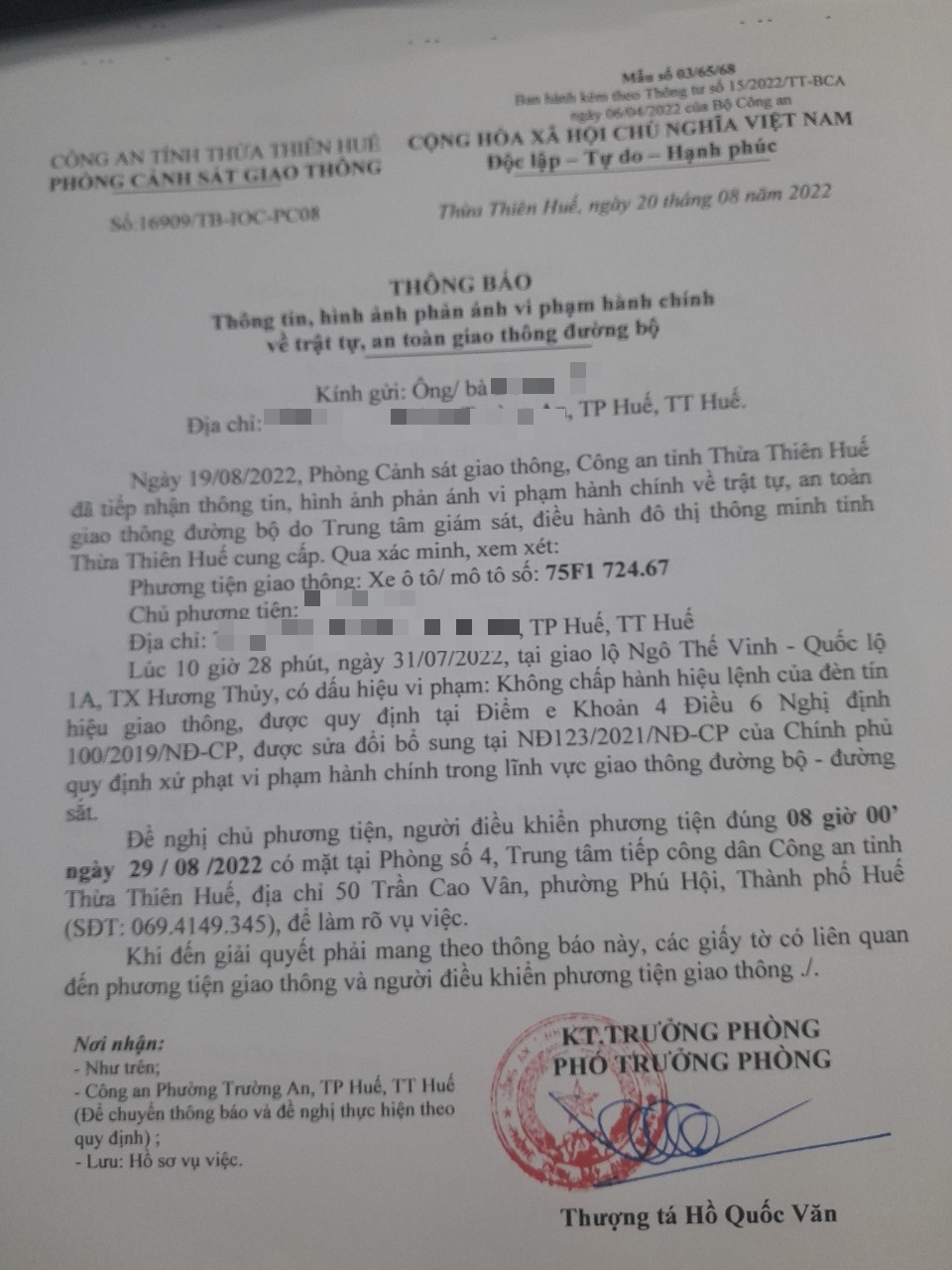 Vào lúc 10 giờ 28 phút, ngày 31/07/2022 Xe máy mang biển kiểm soát 75H172467 Không chấp hành hiệu lệnh của đèn tín hiệu giao thông tại địa điểm Ngô Thế Vinh - QL1A