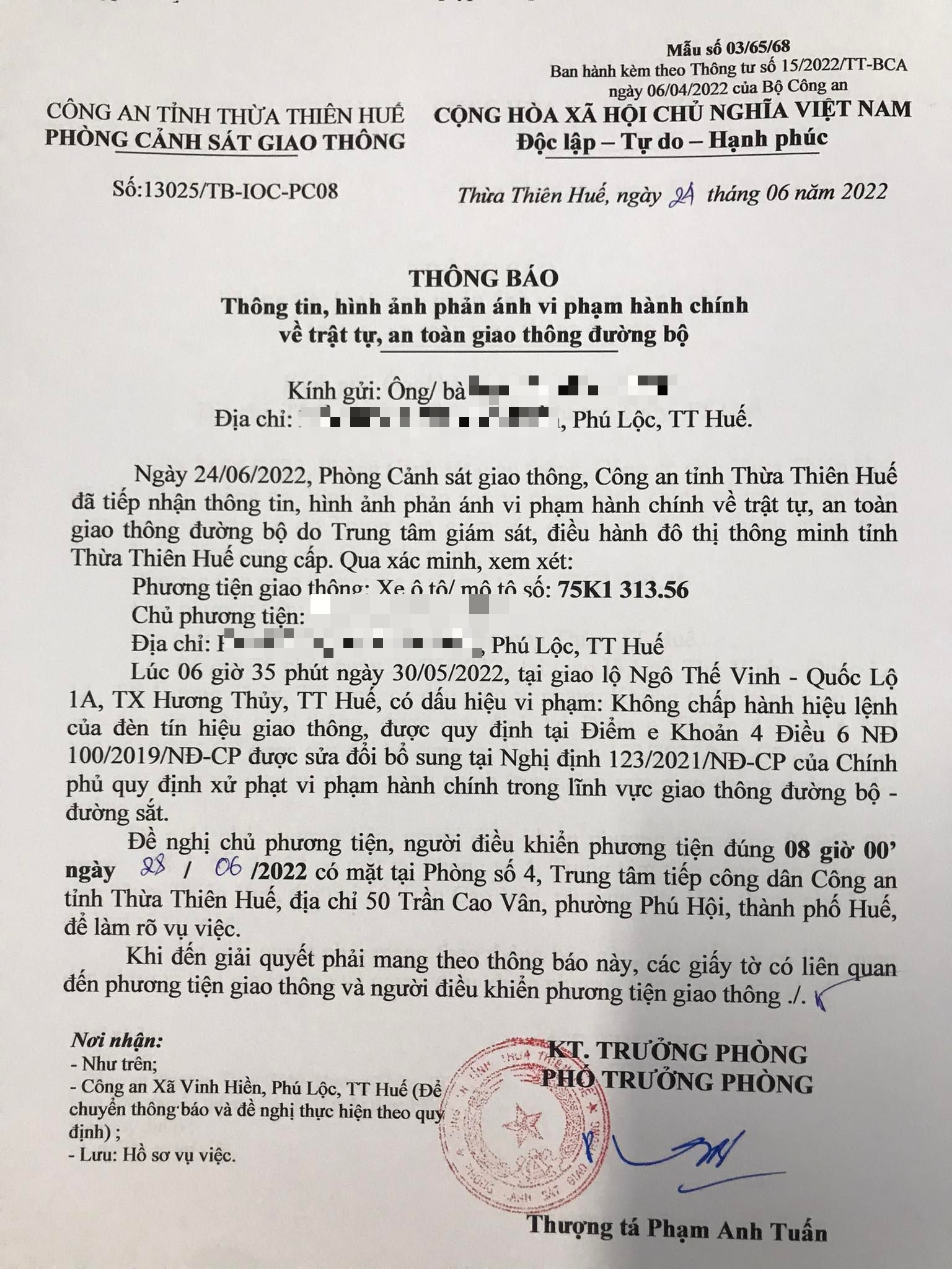 Phòng Cảnh sát giao thông đã lập hồ sơ, thông báo chủ phương tiện đến làm việc vào ngày 28/6/2021. Tuy nhiên, hiện chủ phương tiện vẫn chưa trình diện tại cơ quan. Phòng Cảnh sát giao thông sẽ tiếp tục gửi thông báo đến Công an địa phương nơi chủ phương tiện thường trú, đồng thời thông báo lực lượng tuần tra kiểm soát trên địa bàn, trong quá trình làm nhiệm vụ phát hiện, xử lý.