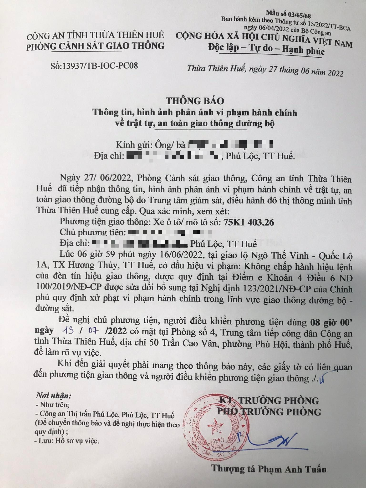 Vấn đề Ông/Bà phản ánh, Công an tỉnh đã chỉ đạo Phòng Cảnh sát giao thông xin thông báo kết quả xử lý như sau:
