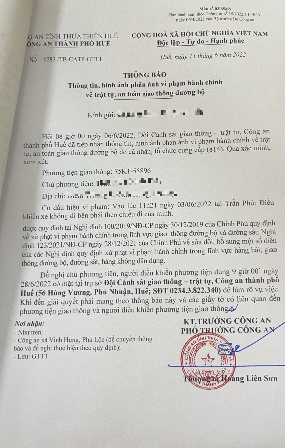Công an thành phố đã lập hồ sơ, thông báo chủ phương tiện đến làm việc vào ngày 28/6/2022. Tuy nhiên, hiện chủ phương tiện vẫn chưa trình diện tại cơ quan. Công an thành phố Huế sẽ tiếp tục thông báo lực lượng tuần tra trên địa bàn, trong quá trình làm nhiệm vụ phát hiện, xử lý.