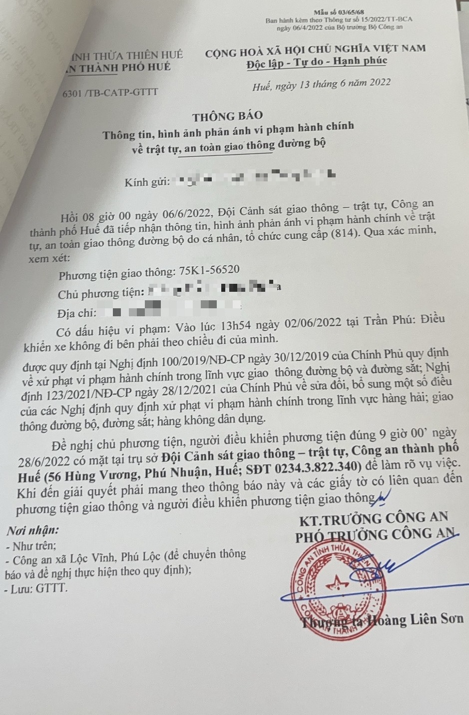 Sau khi nhận được phản ánh, Công an tỉnh đã chỉ đạo Công an thành phố Huế xác minh, kết quả như sau: