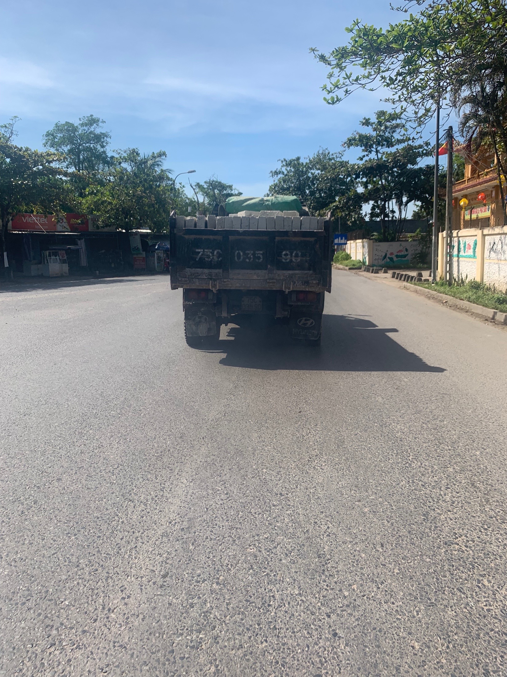 Phương tiện 75C03590 chở táp lô là một loại gạch bê tông cốt liệu, dạng viên lớn, không phải là vật liệu xây dựng dễ rơi vãi. Vì vậy, chưa đủ căn cứ để xác định lỗi vi phạm.