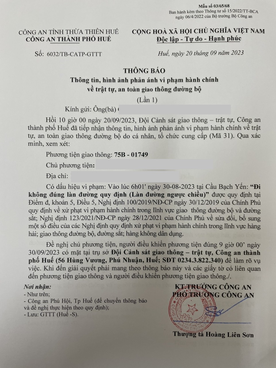 Công an thành phố cập nhật kết quả: Qua xác minh làm việc với chủ phương tiện vi phạm lỗi: Không chấp hành hiệu lệnh, chỉ dẫn của vạch kẻ đường, quy định tại điểm a, khoản 1, điều 5 Nghị định 100/2019/NĐ-CP được sửa đổi, bổ sung tại Nghị định 123/NĐ-CP ngày 28/12/2021. Ra Quyết định xử phạt 350.000đ. (Đính kèm Quyết định)