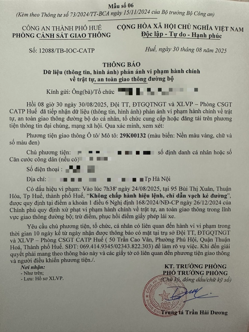 Vấn đề quý Ông/Bà phản ánh, Phòng Cảnh sát giao thông – Công an thành phố Huế đã kiểm tra và xin thông báo kết quả như sau: