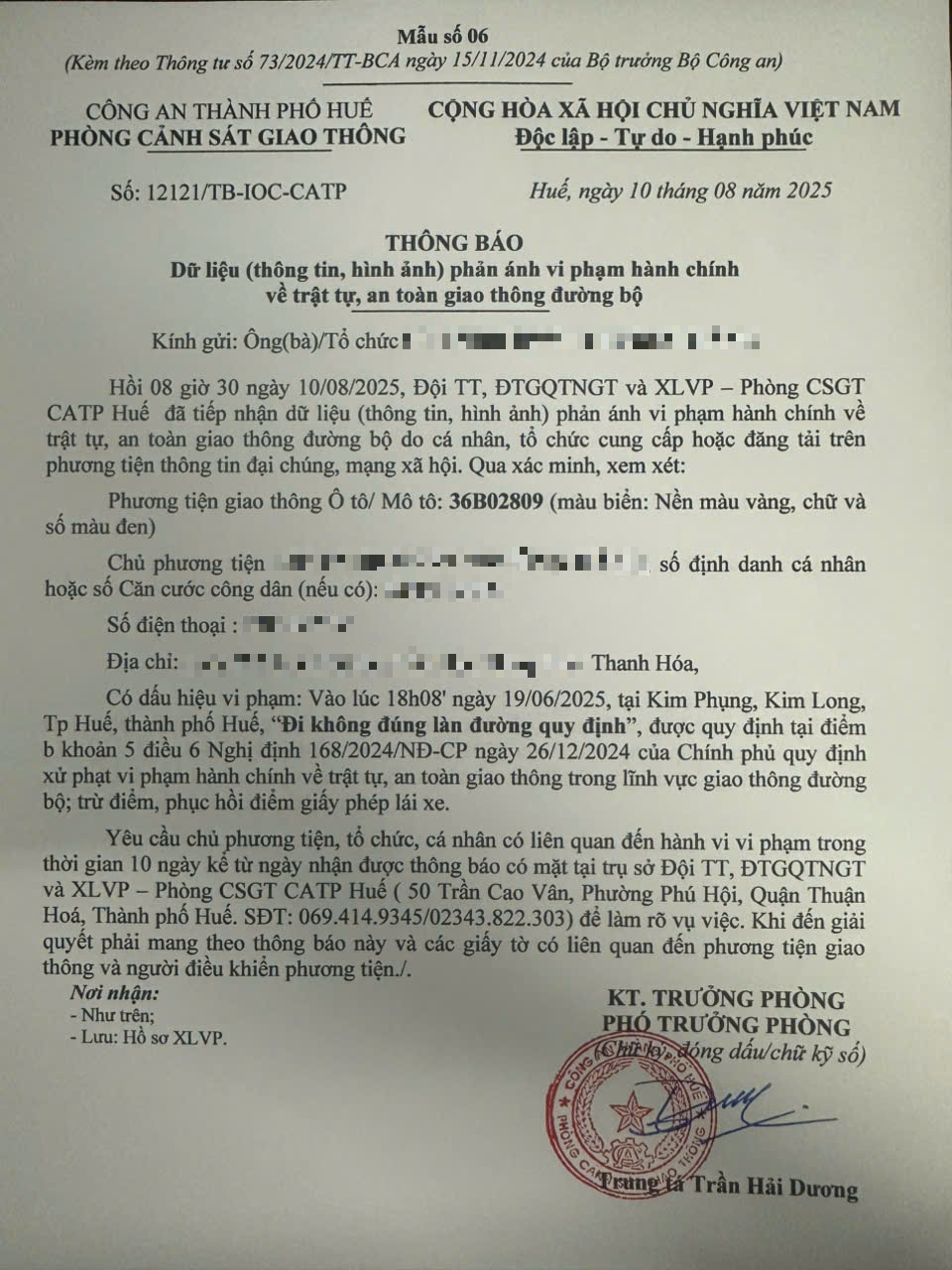 Vấn đề quý Ông/Bà phản ánh, Phòng Cảnh sát giao thông – Công an thành phố Huế đã kiểm tra và xin thông báo kết quả như sau: