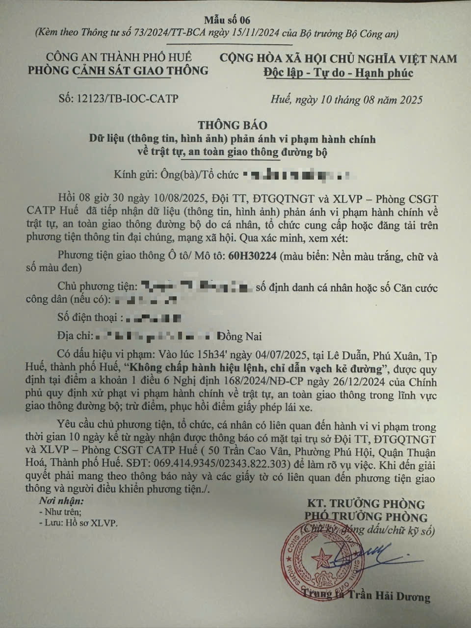 Vấn đề quý Ông/Bà phản ánh, Phòng Cảnh sát giao thông – Công an thành phố Huế đã kiểm tra và xin thông báo kết quả như sau: