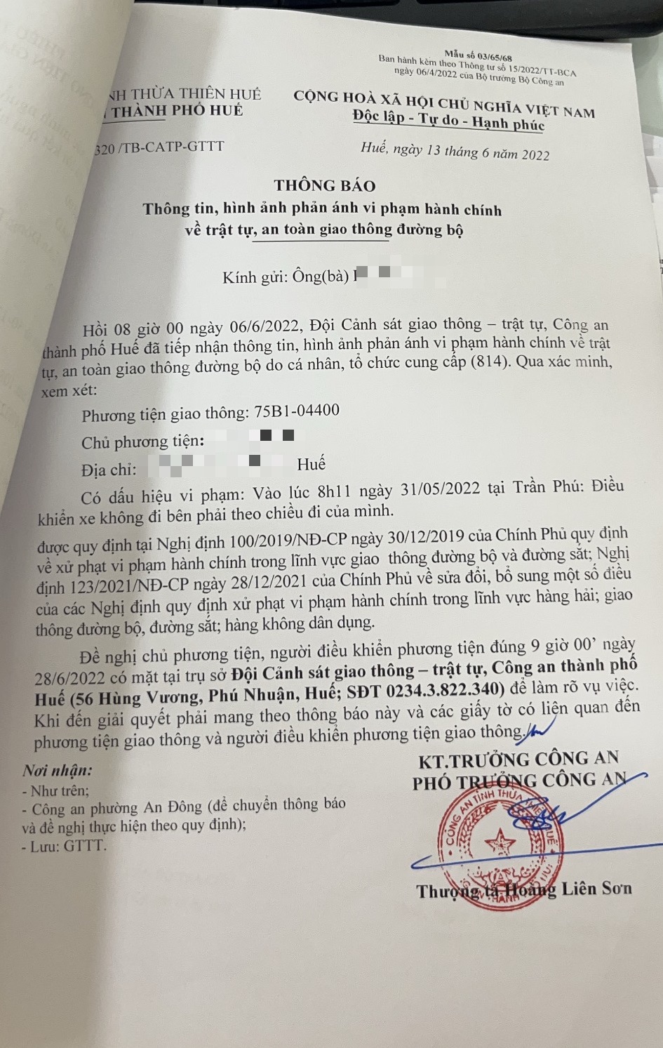 Công an thành phố đã lập hồ sơ, thông báo chủ phương tiện đến làm việc vào ngày 28/6/2022. Tuy nhiên, hiện chủ phương tiện vẫn chưa trình diện tại cơ quan. Công an thành phố sẽ tiếp tục thông báo lực lượng tuần tra kiểm soát trên địa bàn, trong quá trình làm nhiệm vụ phát hiện, xử lý phương tiện trên.