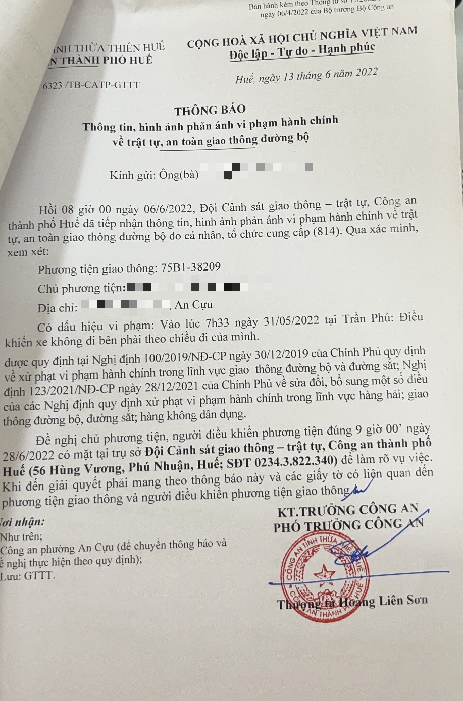 Vấn đề Ông/Bà phản ánh, Công an tỉnh đã chỉ đạo Công an thành phố Huế xác minh và trả lời như sau: