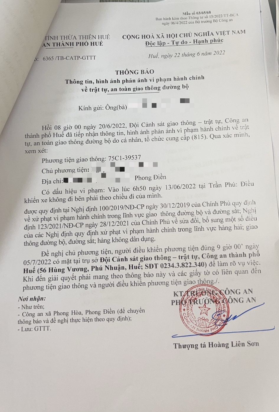 Công an thành phố đã lập hồ sơ, thông báo chủ phương tiện đến làm việc vào ngày 05/7/2022. Tuy nhiên, hiện chủ phương tiện vẫn chưa trình diện tại cơ quan. Công an thành phố Huế sẽ tiếp tục thông báo lực lượng tuần tra trên địa bàn, trong quá trình làm nhiệm vụ phát hiện, xử lý.