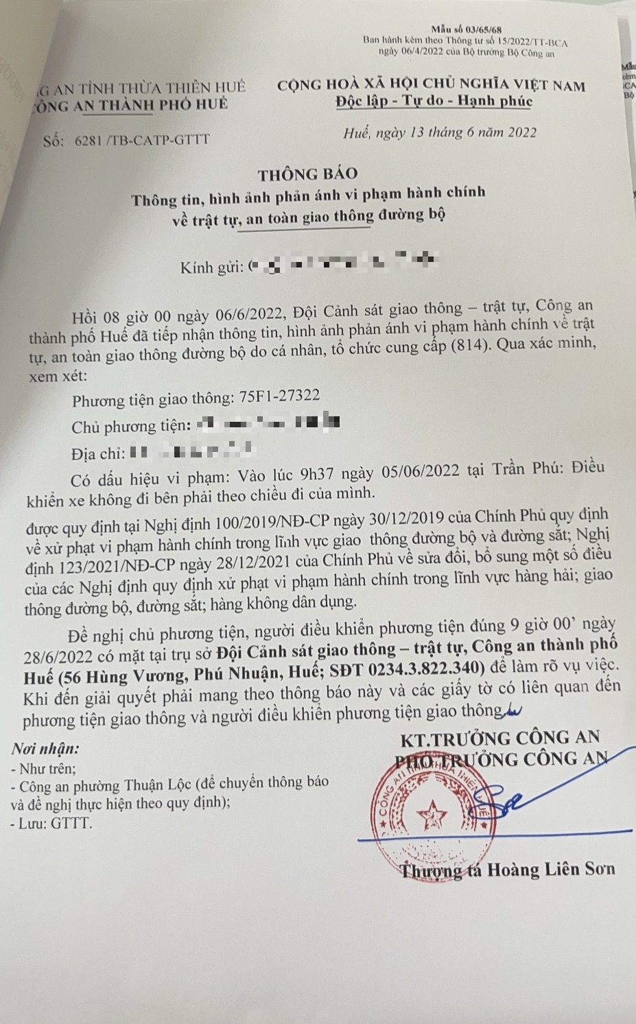 Sau khi nhận được phản ánh, Công an tỉnh đã chỉ đạo Công an thành phố Huế xác minh, kết quả như sau: