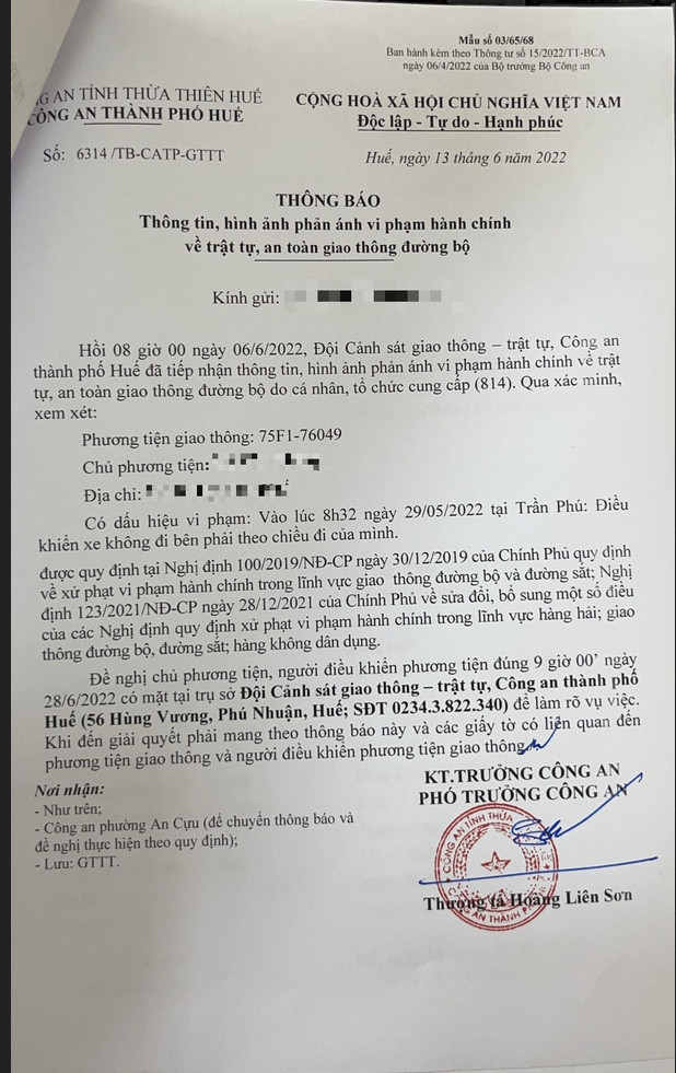 Vấn đề Ông/Bà phản ánh, Công an tỉnh đã chỉ đạo Công an thành phố Huế xác minh và trả lời như sau: