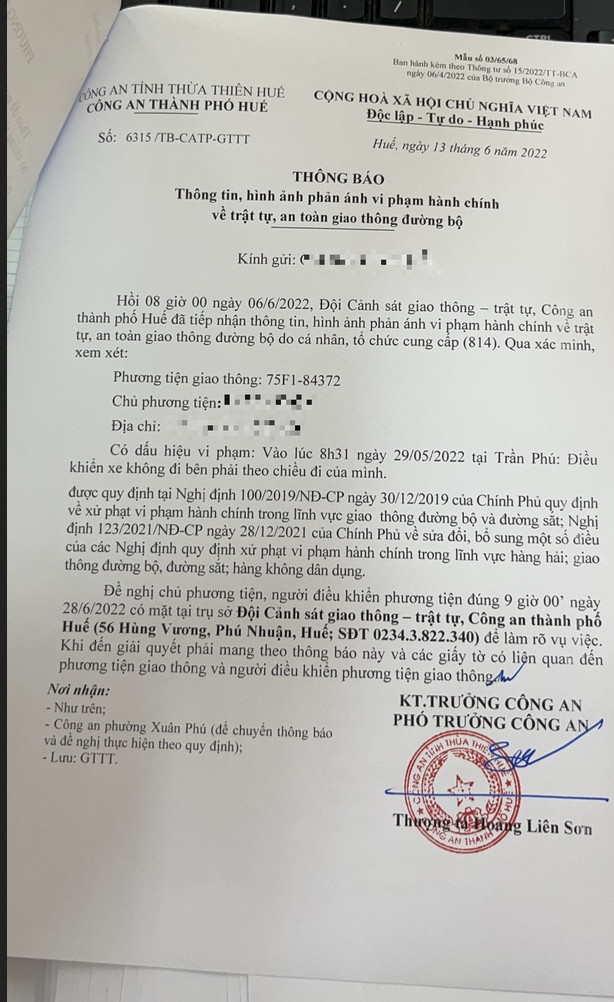 Vấn đề Ông/Bà phản ánh, Công an tỉnh đã chỉ đạo Công an thành phố Huế xác minh và trả lời như sau: