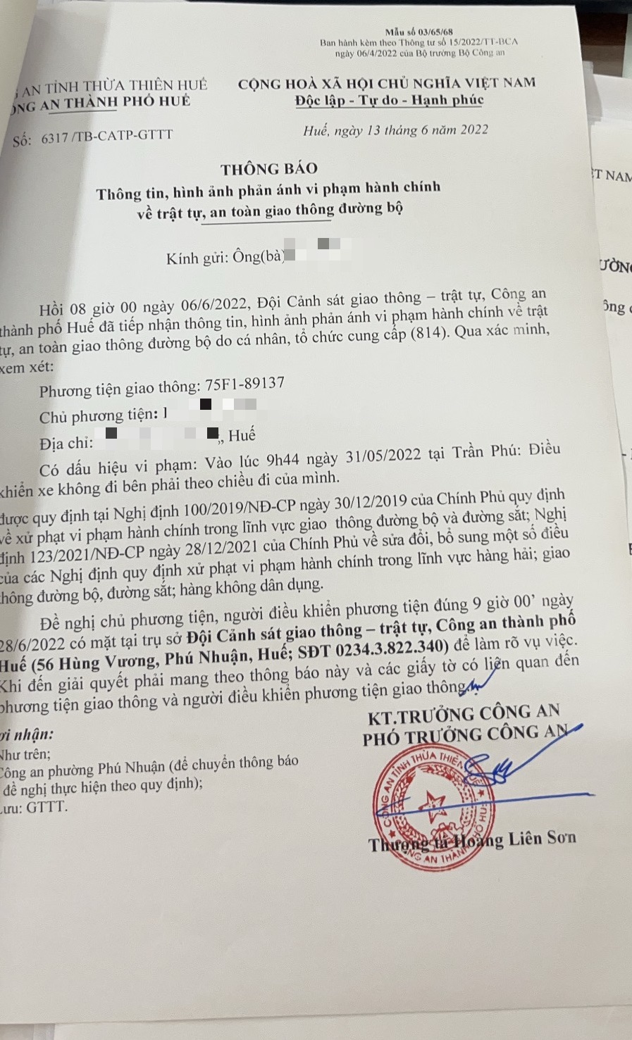 Công an thành phố đã lập hồ sơ, thông báo chủ phương tiện đến làm việc vào ngày 28/6/2022. Tuy nhiên, hiện chủ phương tiện vẫn chưa trình diện tại cơ quan. Công an thành phố sẽ tiếp tục thông báo lực lượng tuần tra kiểm soát trên địa bàn, trong quá trình làm nhiệm vụ phát hiện, xử lý phương tiện trên.