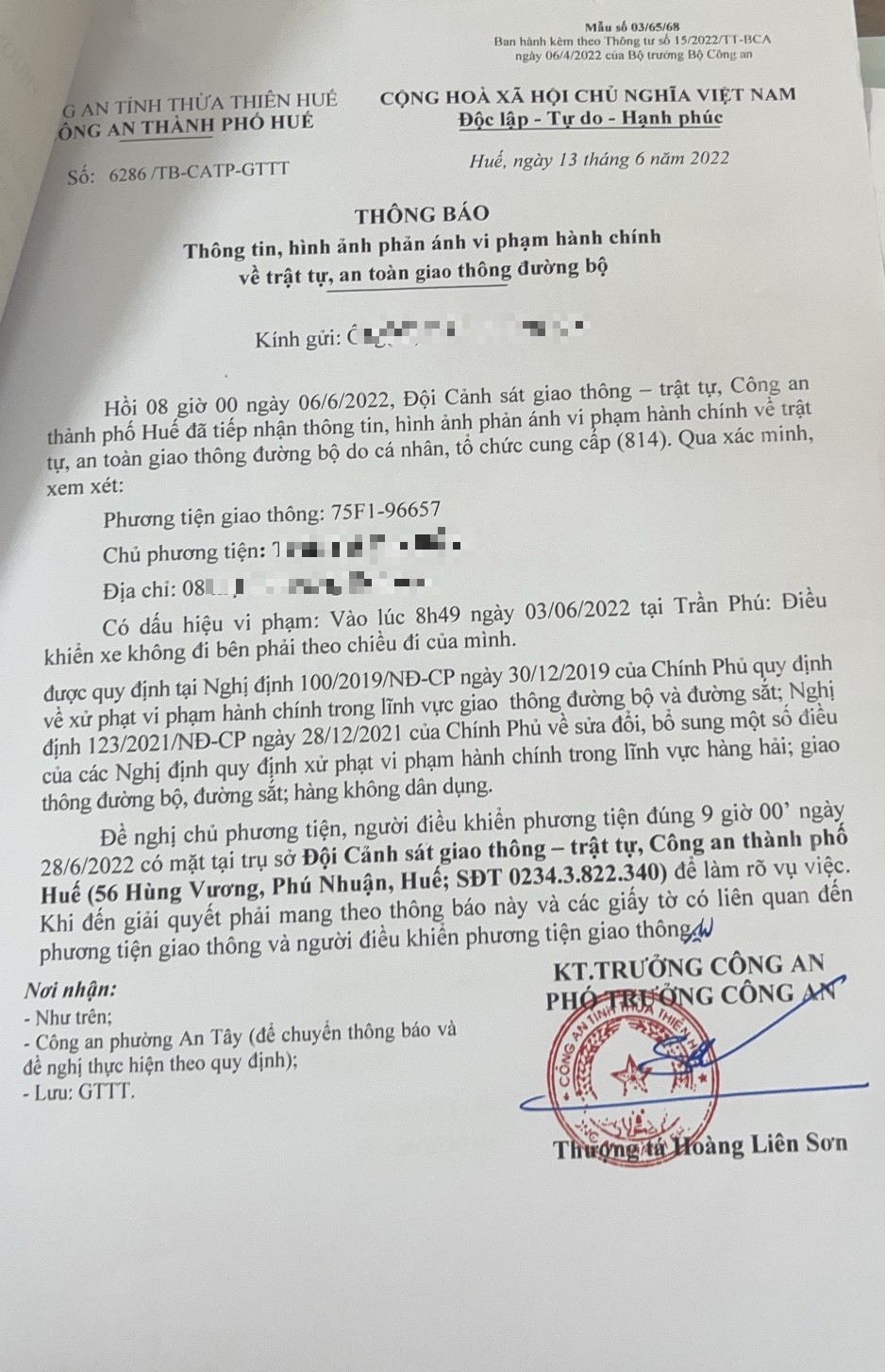 Công an thành phố đã lập hồ sơ, thông báo chủ phương tiện đến làm việc vào ngày 28/6/2022. Tuy nhiên, hiện chủ phương tiện vẫn chưa trình diện tại cơ quan. Công an thành phố Huế sẽ tiếp tục thông báo lực lượng tuần tra trên địa bàn, trong quá trình làm nhiệm vụ phát hiện, xử lý.