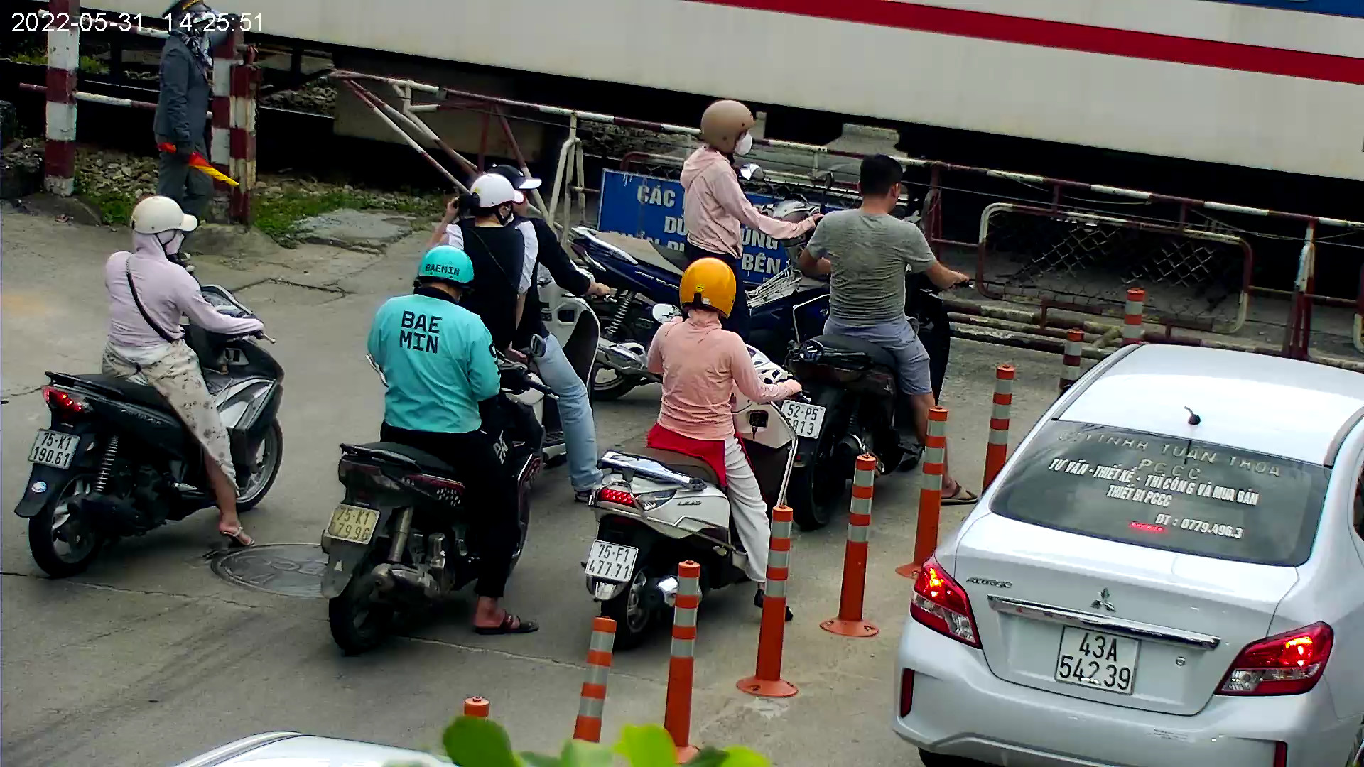 Vào lúc 14 giờ 25 phút ngày 31/05/2022 trên tuyến đường Trần Phú, xe mô tô mang biển kiểm soát 75K119061, dừng xe chờ tàu sai quy định gây ùn tắc giao thông.
