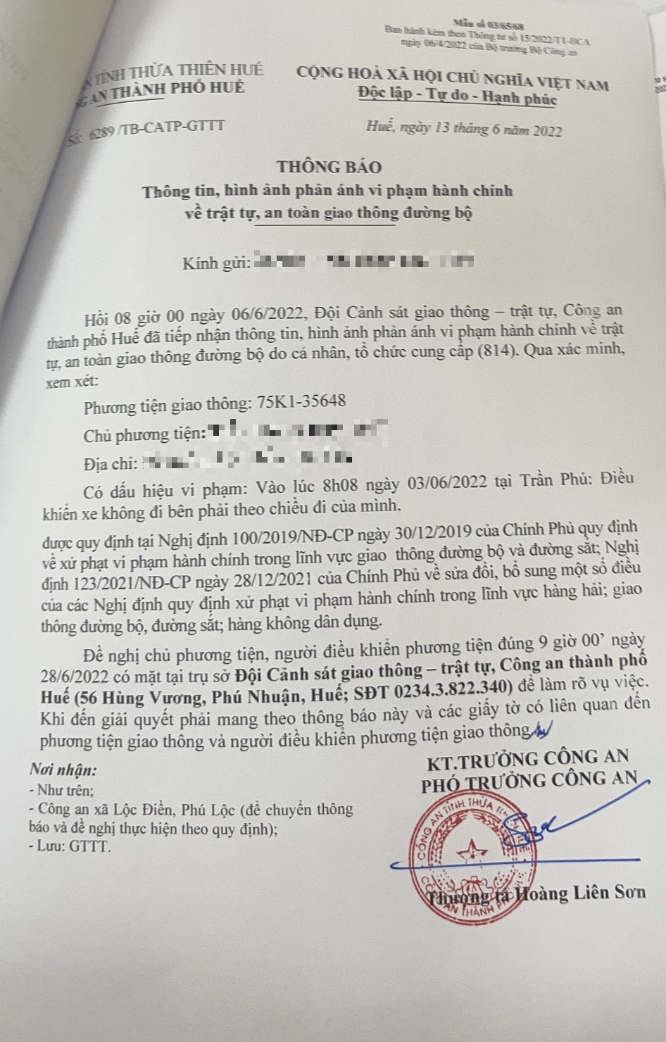 Công an thành phố đã lập hồ sơ, thông báo chủ phương tiện đến làm việc vào ngày 28/6/2022. Tuy nhiên, hiện chủ phương tiện vẫn chưa trình diện tại cơ quan. Công an thành phố Huế sẽ tiếp tục thông báo lực lượng tuần tra trên địa bàn, trong quá trình làm nhiệm vụ phát hiện, xử lý.