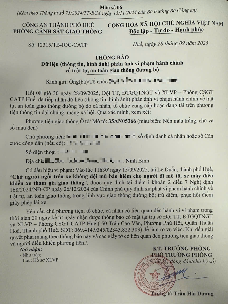 Vấn đề quý Ông/Bà phản ánh, Phòng Cảnh sát giao thông – Công an thành phố Huế đã kiểm tra và thông báo kết quả như sau: