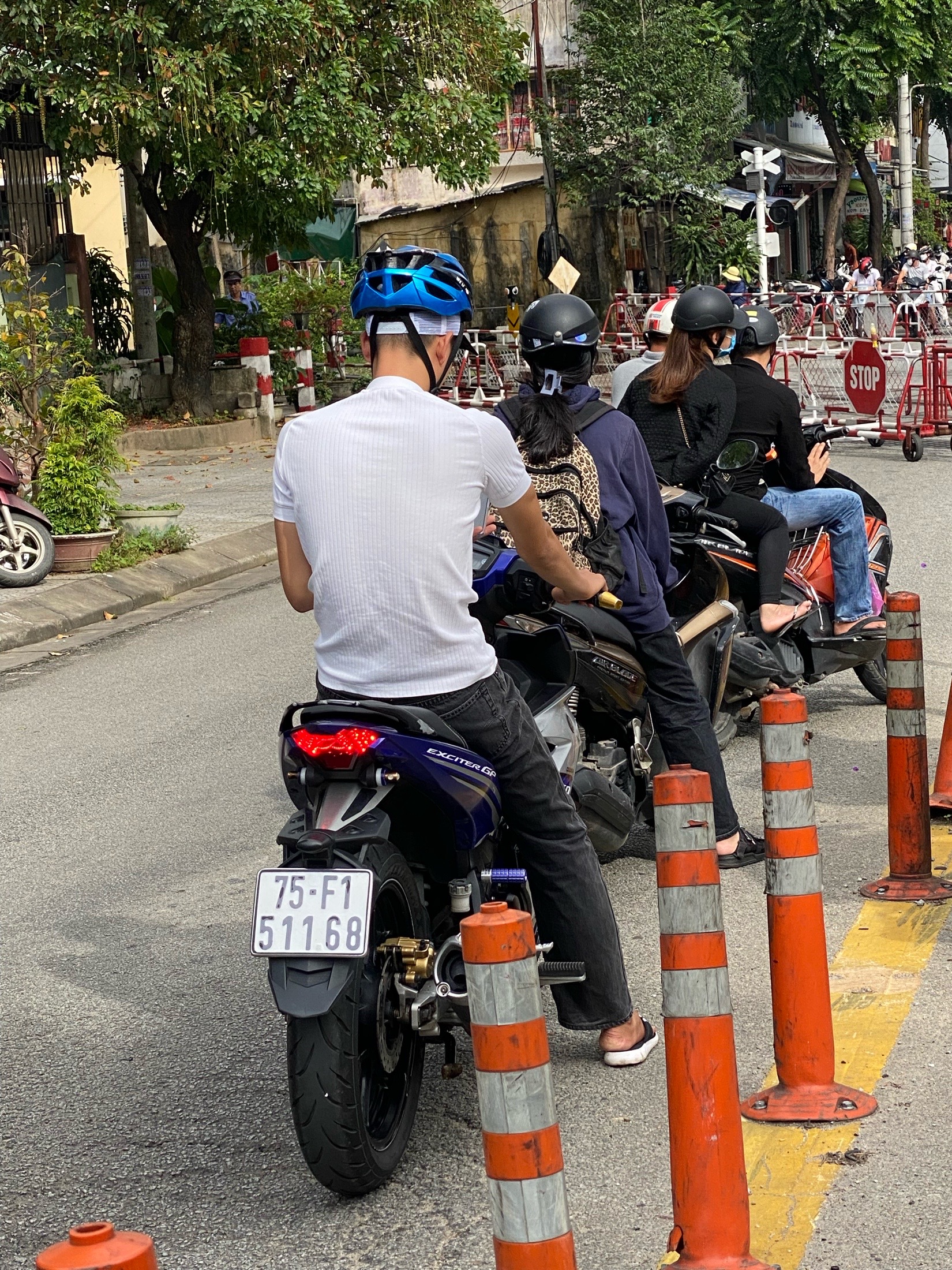 Qua hình ảnh được cung cấp, xác định người điều khiển phương tiện 75F151168 vi phạm lỗi: Dừng xe ở lòng đường đô thị gây cản trở giao thông (quy định tại điểm đ, khoản 2, Điều 6 Nghị định 100/2019/NĐ-CP, sửa đổi bổ sung tại Nghị định 123/2021/NĐ-CP).