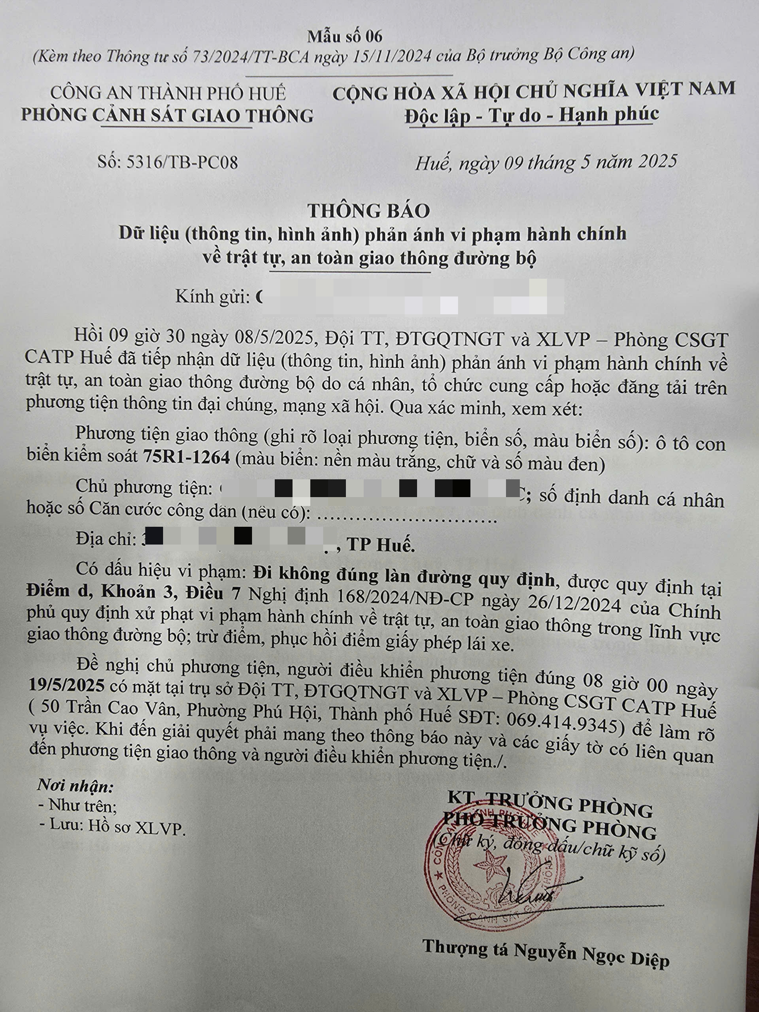 Vấn đề quý Ông/Bà phản ánh, Phòng Cảnh sát giao thông – Công an thành phố Huế đã kiểm tra và xin thông báo kết quả như sau: