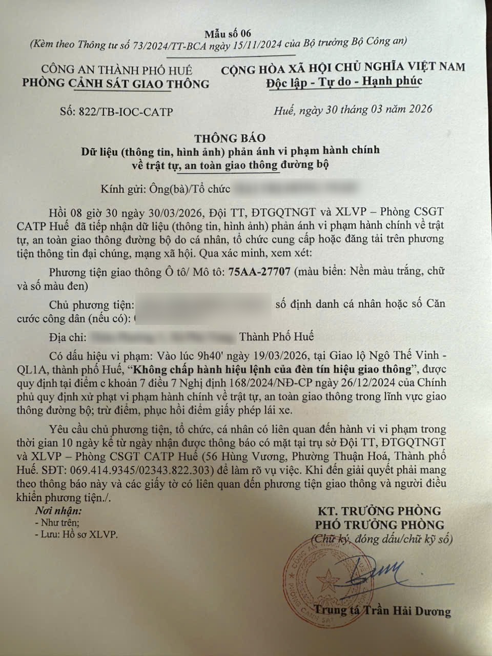 Vấn đề quý Ông/Bà phản ánh, Công an thành phố Huế đã chỉ đạo Phòng Cảnh sát giao thông kiểm tra và xin thông báo kết quả như sau: