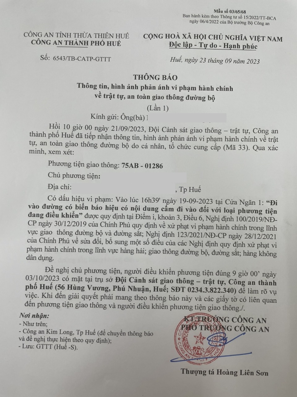 Vấn đề quý Ông/Bà phản ánh, Công an tỉnh đã chỉ đạo Công an thành phố Huế xác minh và xin thông báo kết quả như sau: