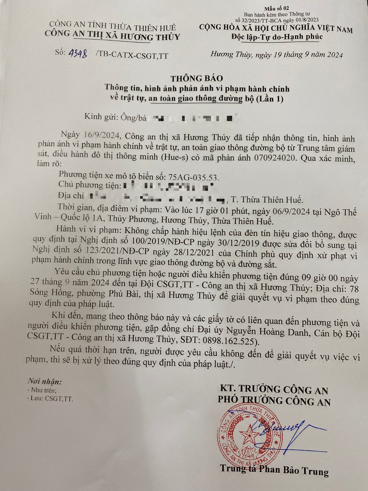 Vấn đề quý Ông/Bà phản ánh, Công an tỉnh đã chỉ đạo Công an thị xã Hương Thủy kiểm tra và xin thông báo kết quả như sau: