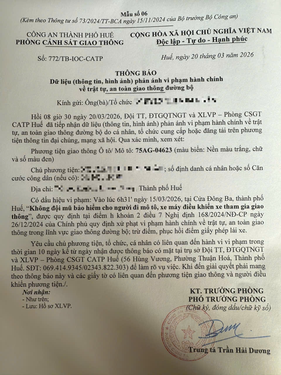 Vấn đề quý Ông/Bà phản ánh, Công an thành phố Huế đã chỉ đạo Phòng Cảnh sát giao thông kiểm tra và trả lời như sau: