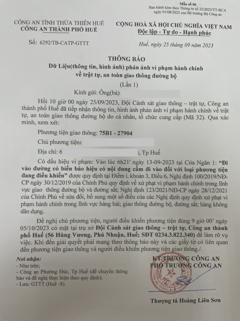 Vấn đề quý Ông/Bà phản ánh, Công an tỉnh đã chỉ đạo Công an thành phố Huế xác minh và xin thông báo kết quả như sau:
