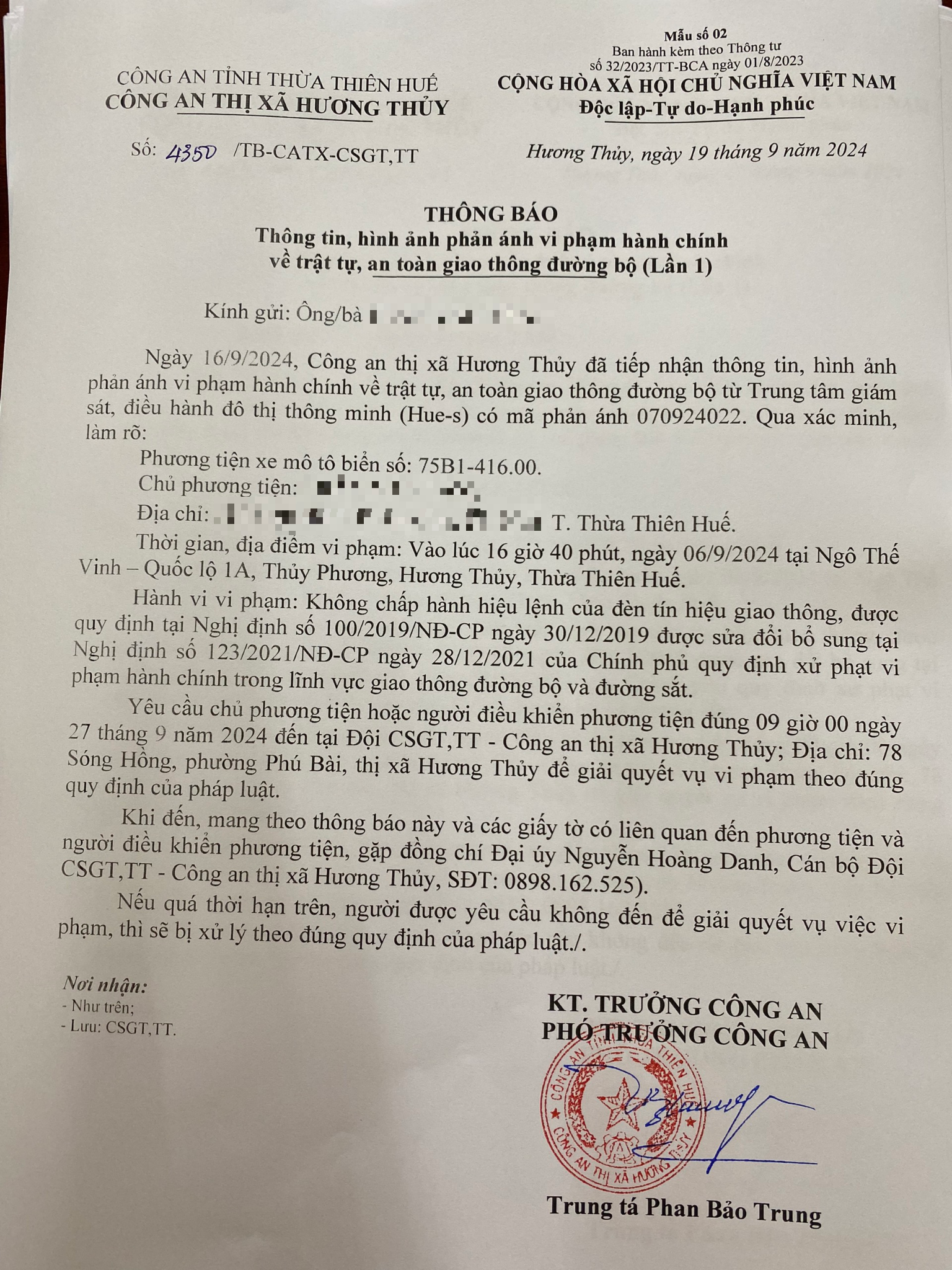 Vấn đề quý Ông/Bà phản ánh, Công an tỉnh đã chỉ đạo Công an thị xã Hương Thủy kiểm tra và xin thông báo kết quả như sau: