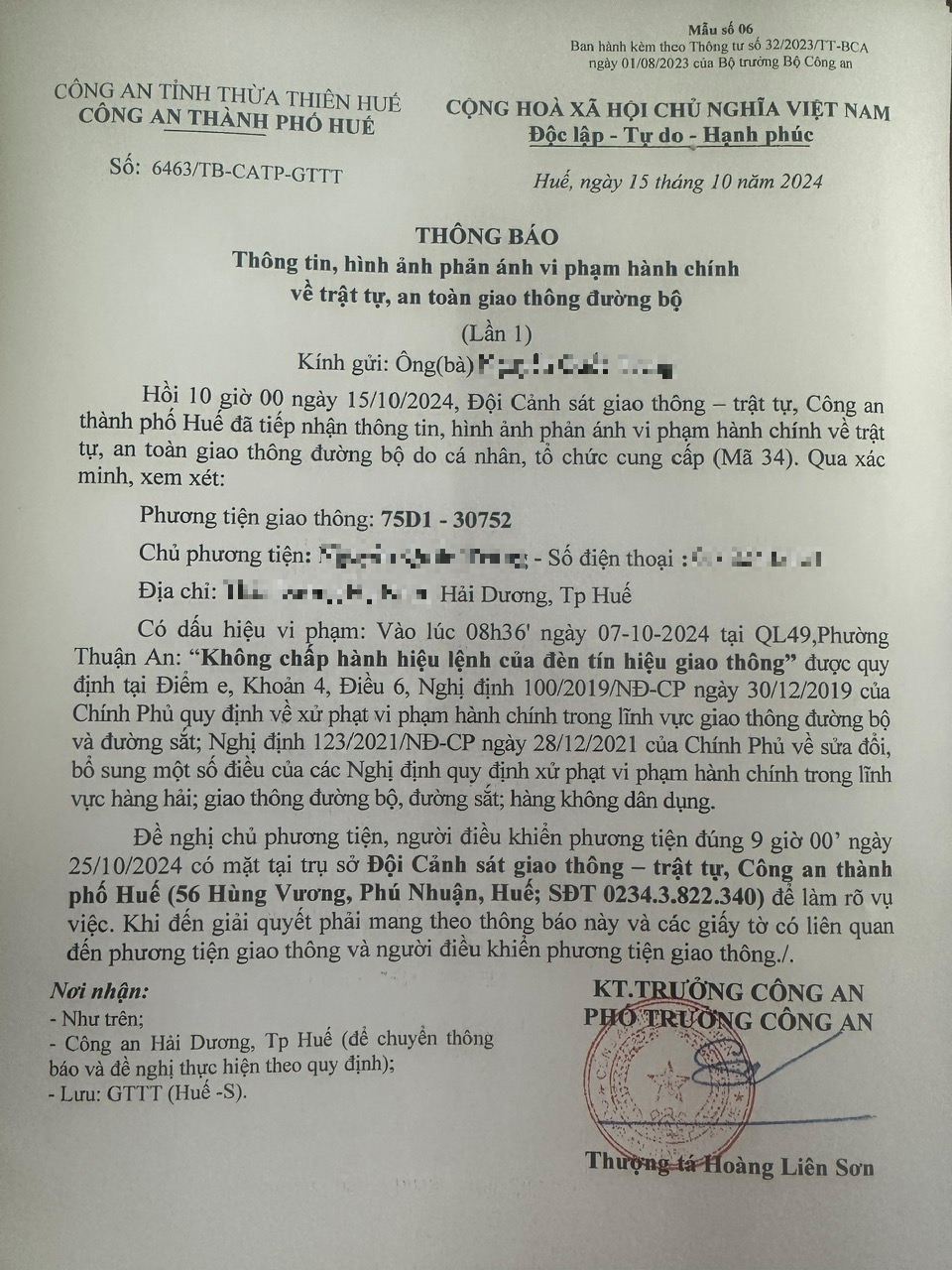 Vấn đề quý Ông/Bà phản ánh, Công an tỉnh đã chỉ đạo Công an thành phố Huế kiểm tra và xin thông báo kết quả như sau: