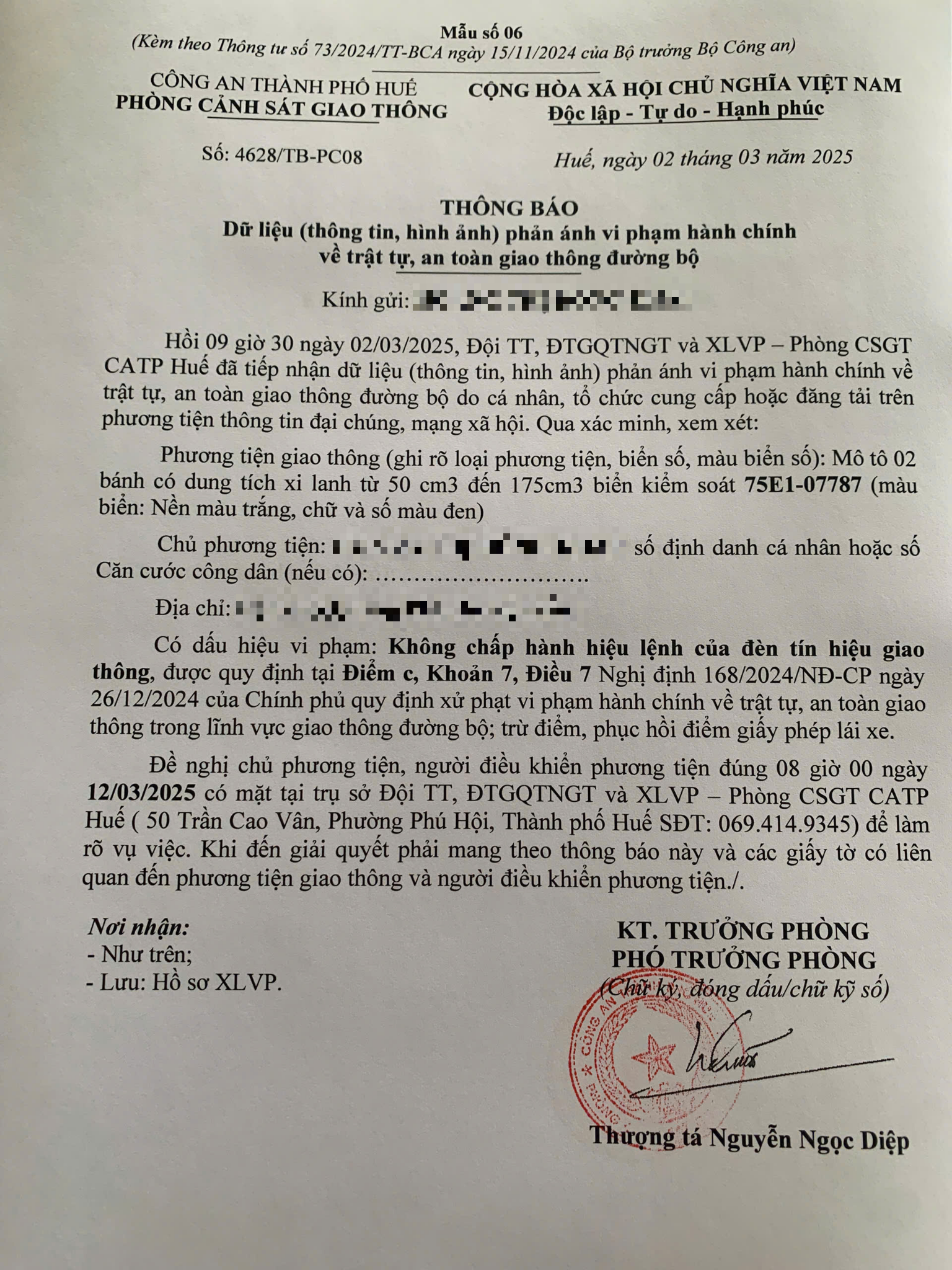 Vấn đề quý Ông/Bà phản ánh, Công an thành phố Huế kiểm tra và xin thông báo kết quả như sau: