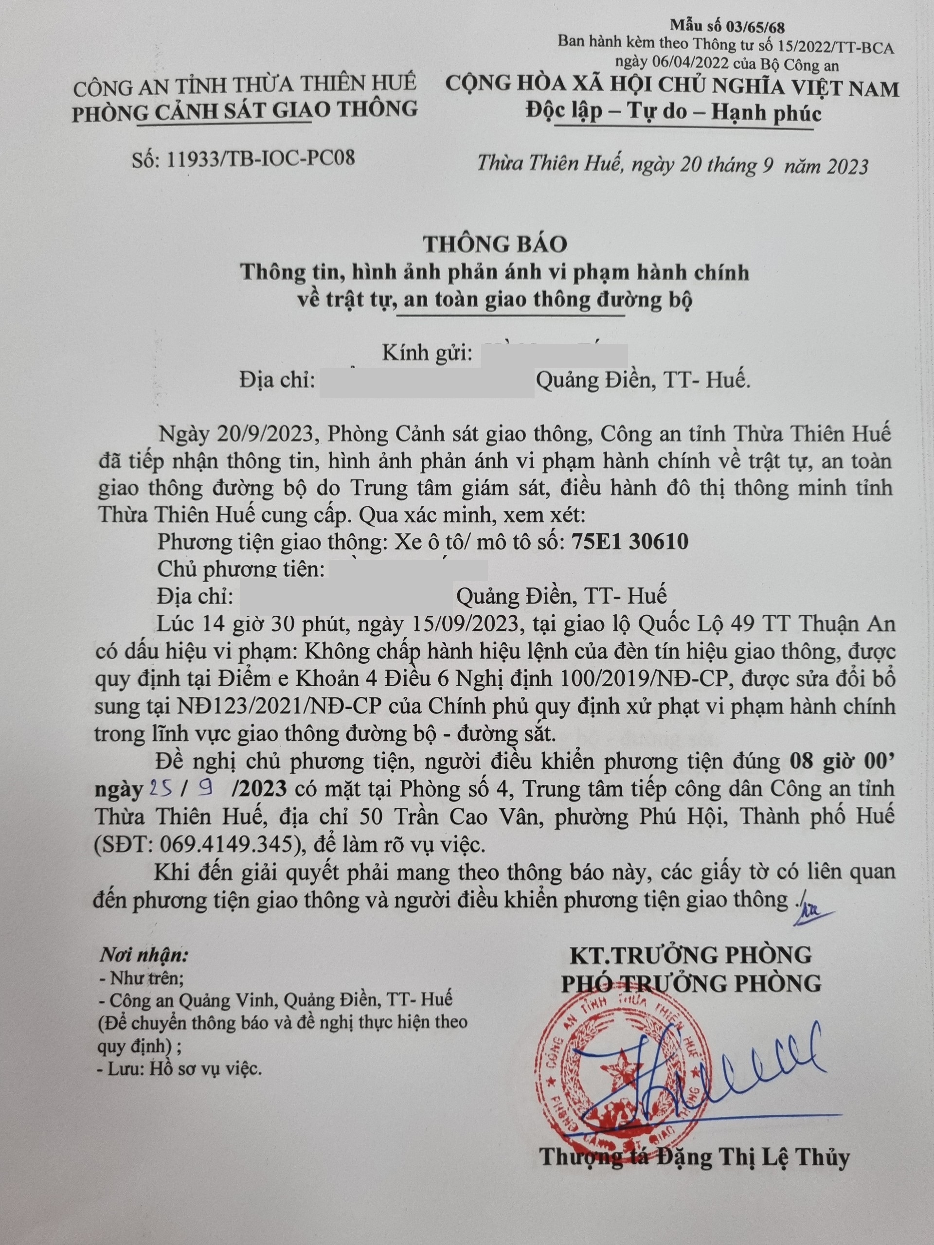 Phòng CSGT đã gửi thông báo, yêu cầu chủ phương tiện đến làm việc theo quy định của pháp luật. Tuy nhiên, đã quá ngày hẹn nhưng chủ phương tiện vẫn chưa đến làm việc theo yêu cầu. Phòng CSGT sẽ tiếp tục thông báo Công an địa phương nơi chủ phương tiện thường trú; đồng thời, thông báo các tổ tuần tra kiểm soát trên địa bàn, trong quá trình làm nhiệm vụ nếu phát hiện sẽ tiến hành dừng xe để xử lý.